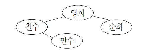 예를 들어, 철수와 영희, 철수와 만수, 영희와 순희가 서로 친구 관계라면 이를 표현하는 친구 관계 그래프는 다음과 같다.