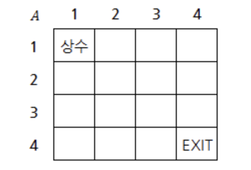 상수는 가능한 한 빨리 출구인 A[n][n]에 도달하고자 합니다. 상수가 A[i][j]에 있다고 가정했을 때, 상수는 최단 경로로 이동하기 위해 아래와 같은 조건을 만족하며 이동합니다.