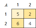 상수는 2차원 배열 A[1..n][1..n] (n≥2, n은 자연수)을 가지고 있습니다. 이 배열의 각 원소는 1 이상 222 이하의 정수입니다.